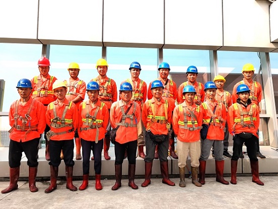 每次施工都有委派專職安全監管員,自始至終做現場安全監督,還實行遠程實時監控,全方位全視覺對施工現場進行現場管理,施工作業現場必須設高空作業安全警示標志及護欄帶.